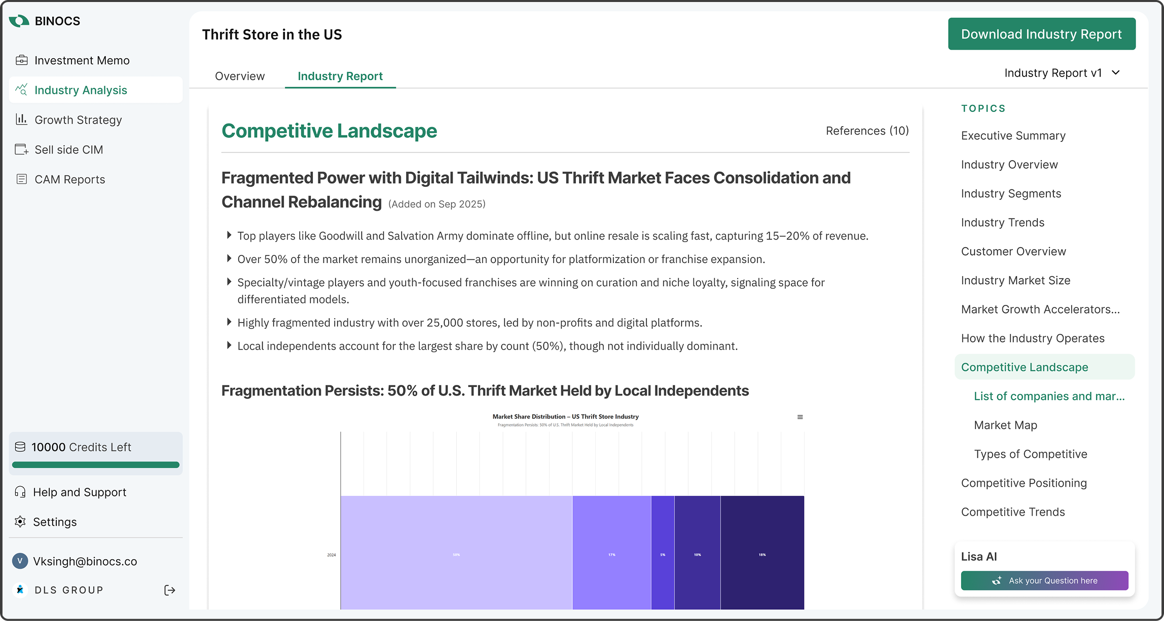 Automated industry deep dives in minutes. Perfect for thesis-building and origination teams.