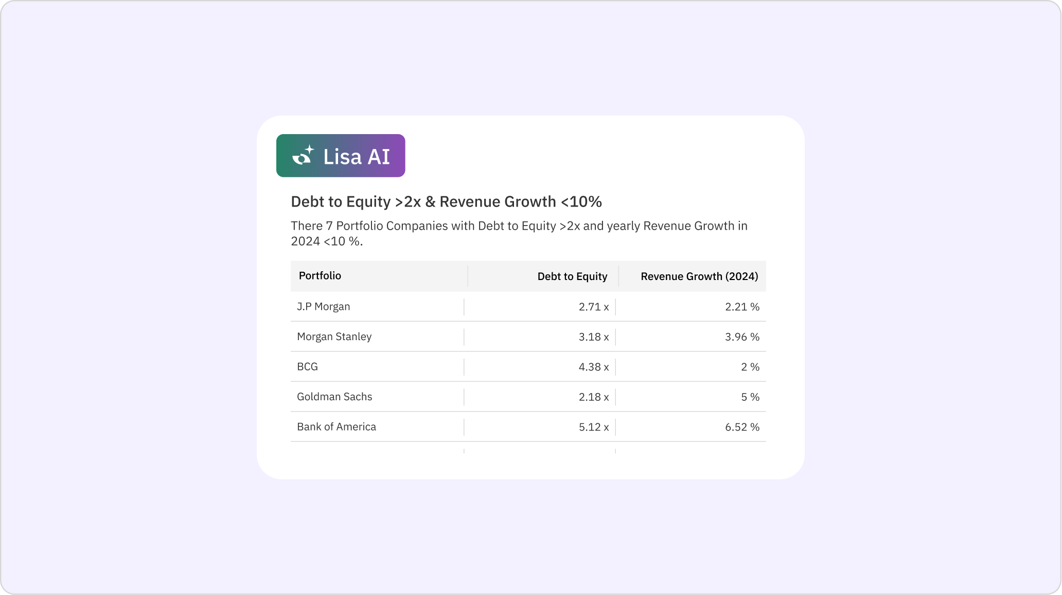 Conversational interface that answers queries, flags anomalies, suggests ratio insights and drafts concise narrative summaries - accelerating analysis.