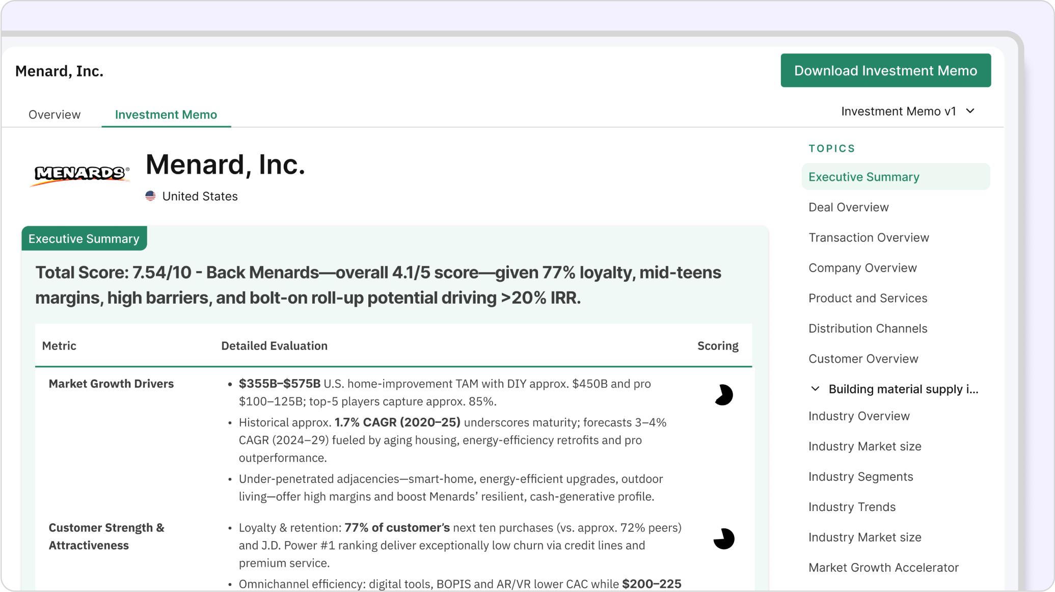 Strategic Commentary on the Deal Various Metrics along with Scoring for better Decision Making for Stakeholders.